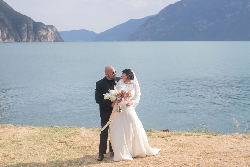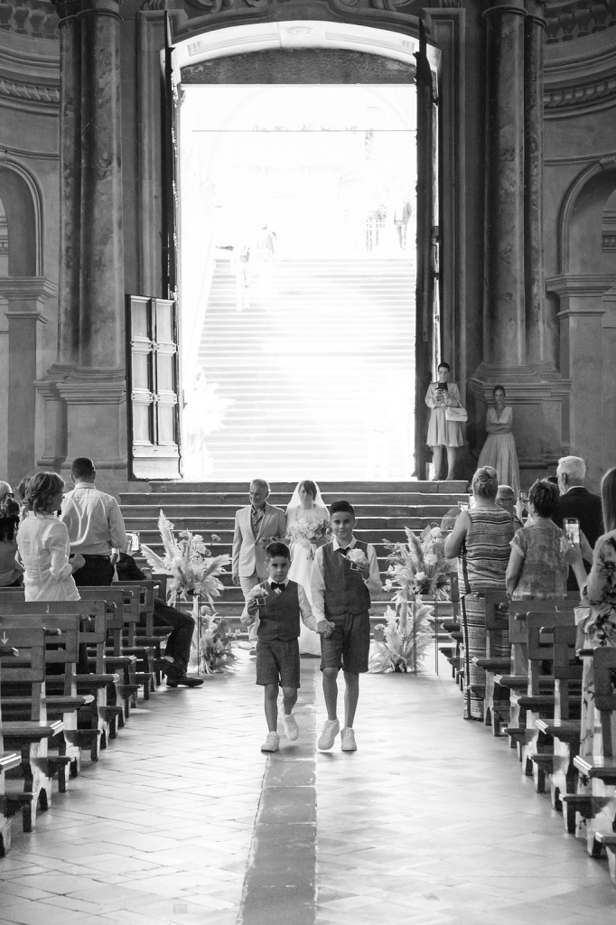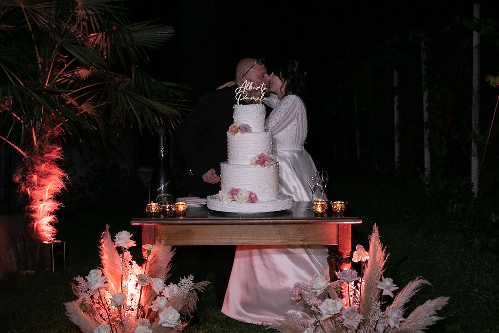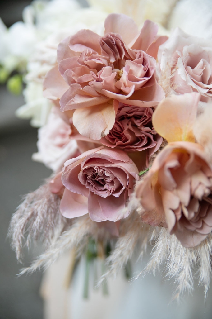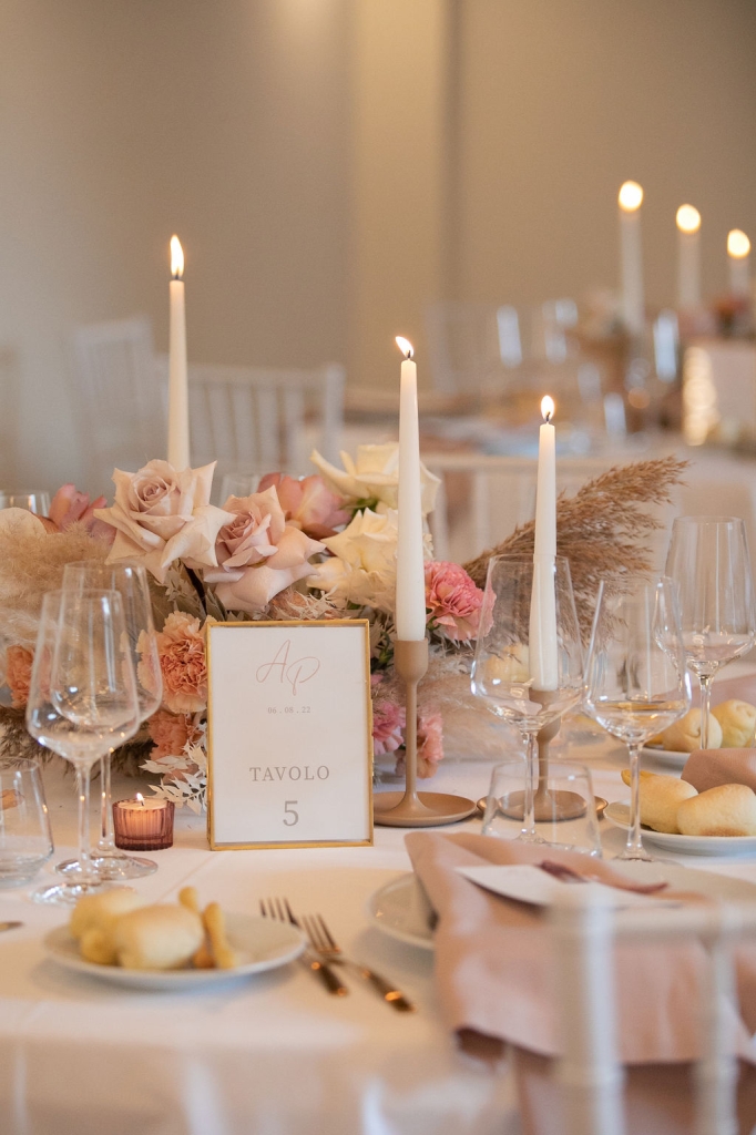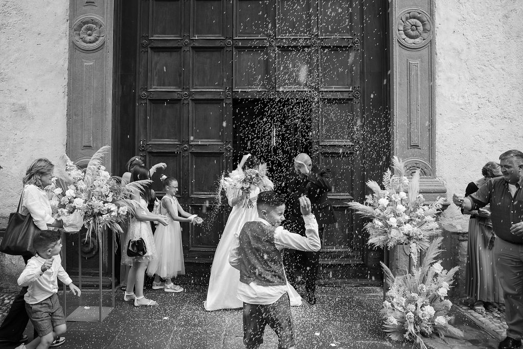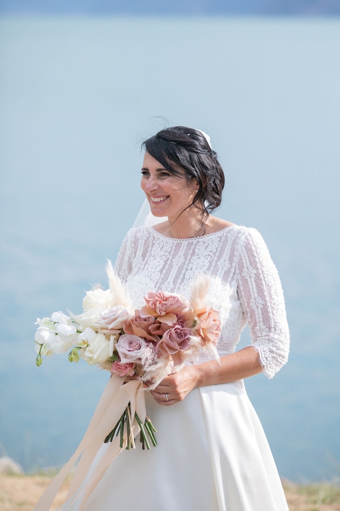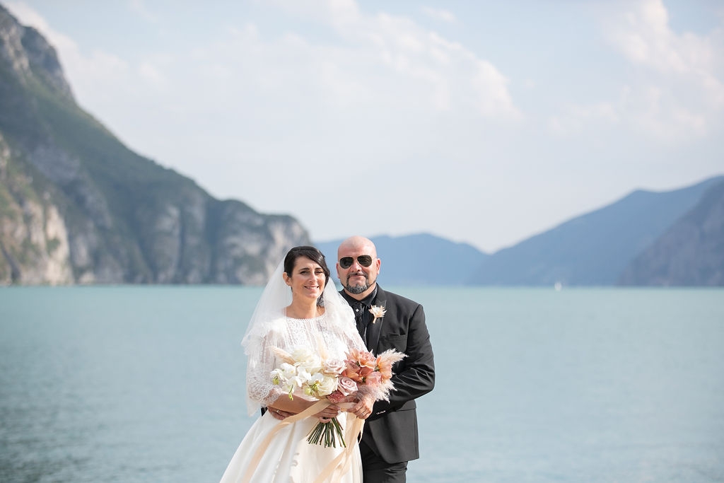 Pamela and Alberto were already a family but, after having suffered a lot during the pandemic, they decided to celebrate their love with their beloved ones. They live on Lake Iseo and they chose to get married in the amazing Basilica of Lovere. For their reception, they chose an historical venue in Vallecamonica, sourrounded by vineyards. Blush pink, soft natural colours, giant roses and pampas grass were the leading elements of the mood.