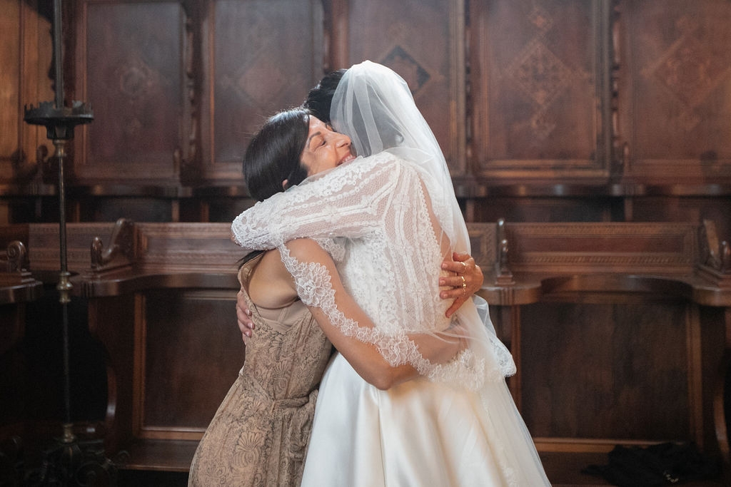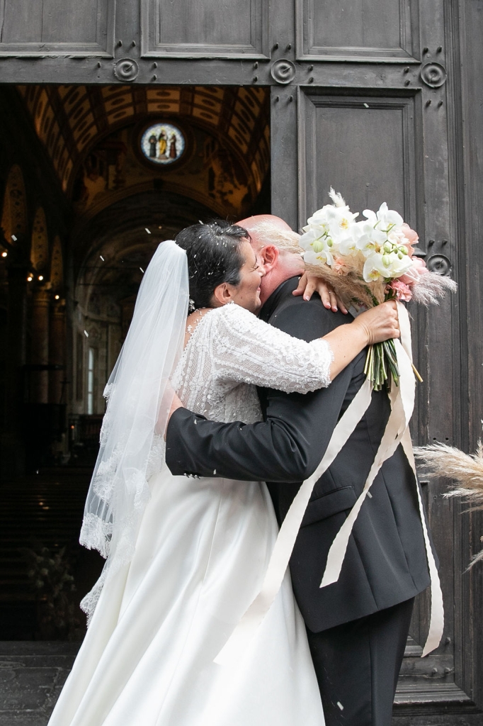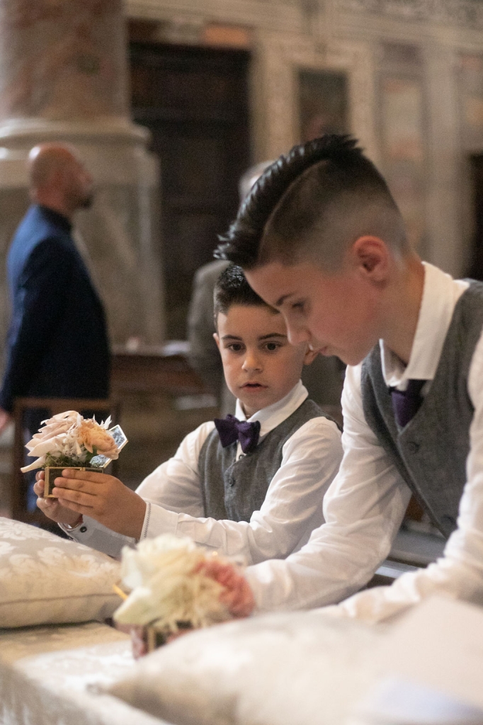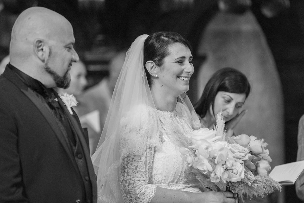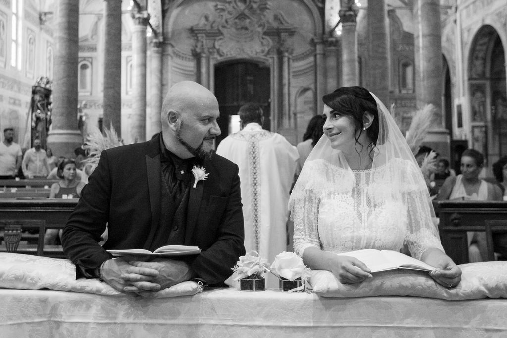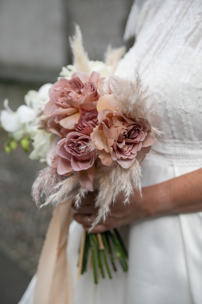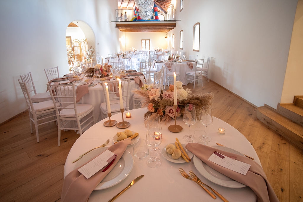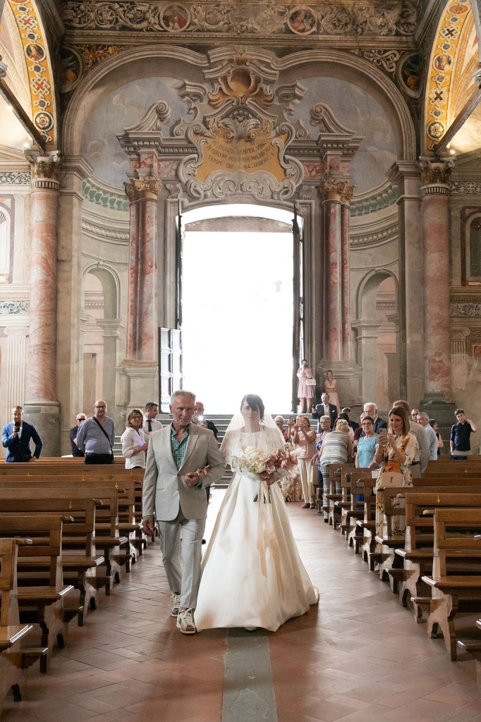 Pamela and Alberto were already a family but, after having suffered a lot during the pandemic, they decided to celebrate their love with their beloved ones. They live on Lake Iseo and they chose to get married in the amazing Basilica of Lovere. For their reception, they chose an historical venue in Vallecamonica, sourrounded by vineyards. Blush pink, soft natural colours, giant roses and pampas grass were the leading elements of the mood.
