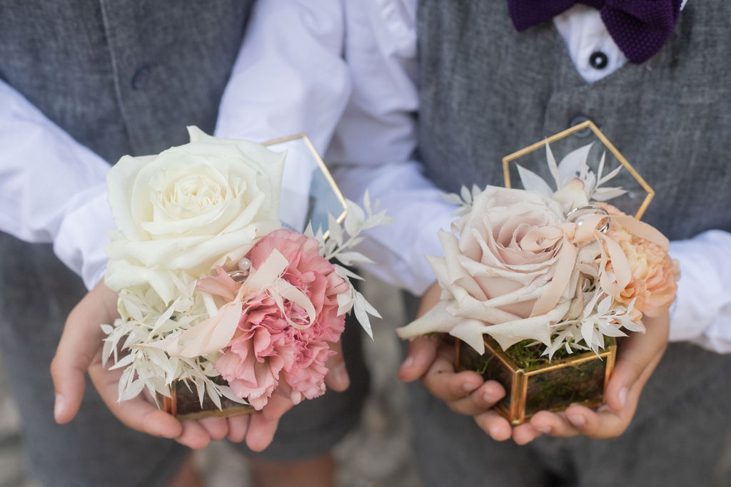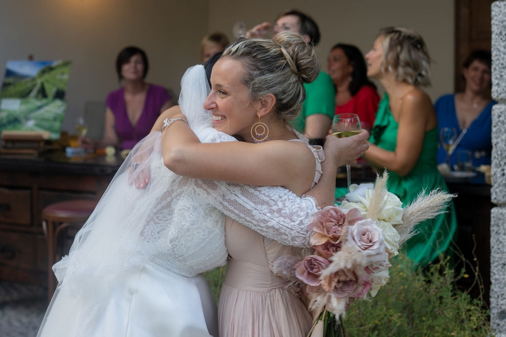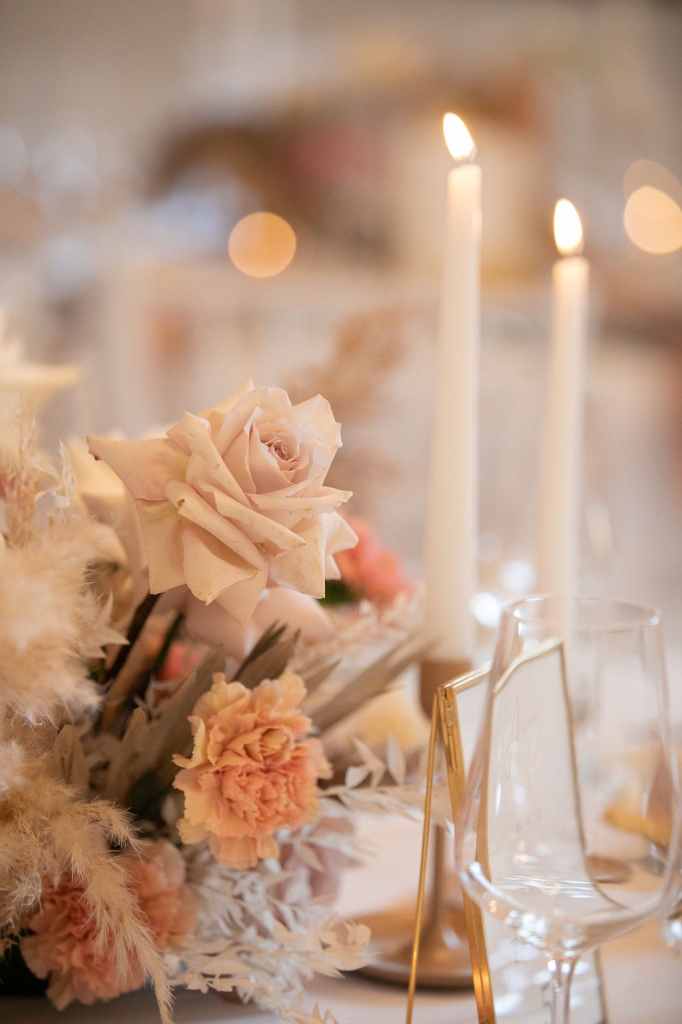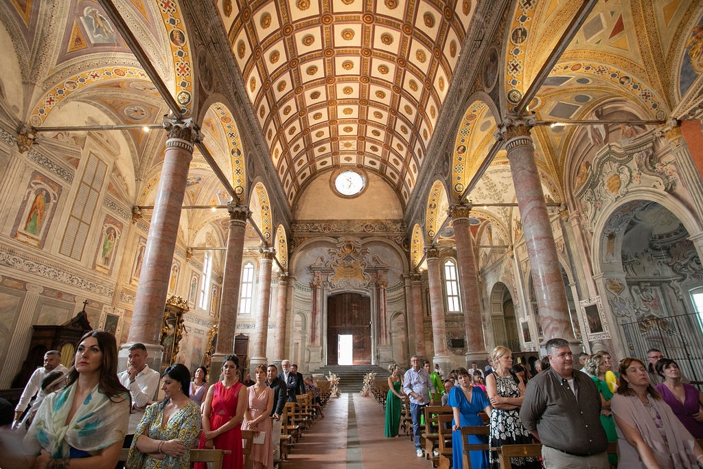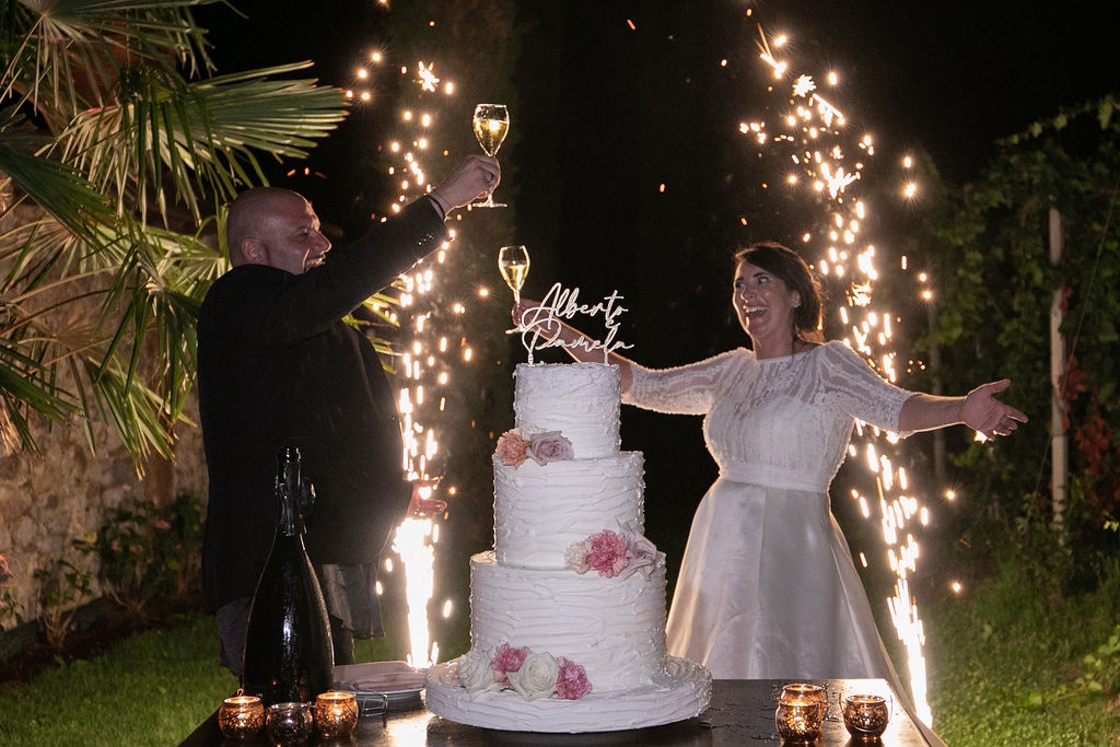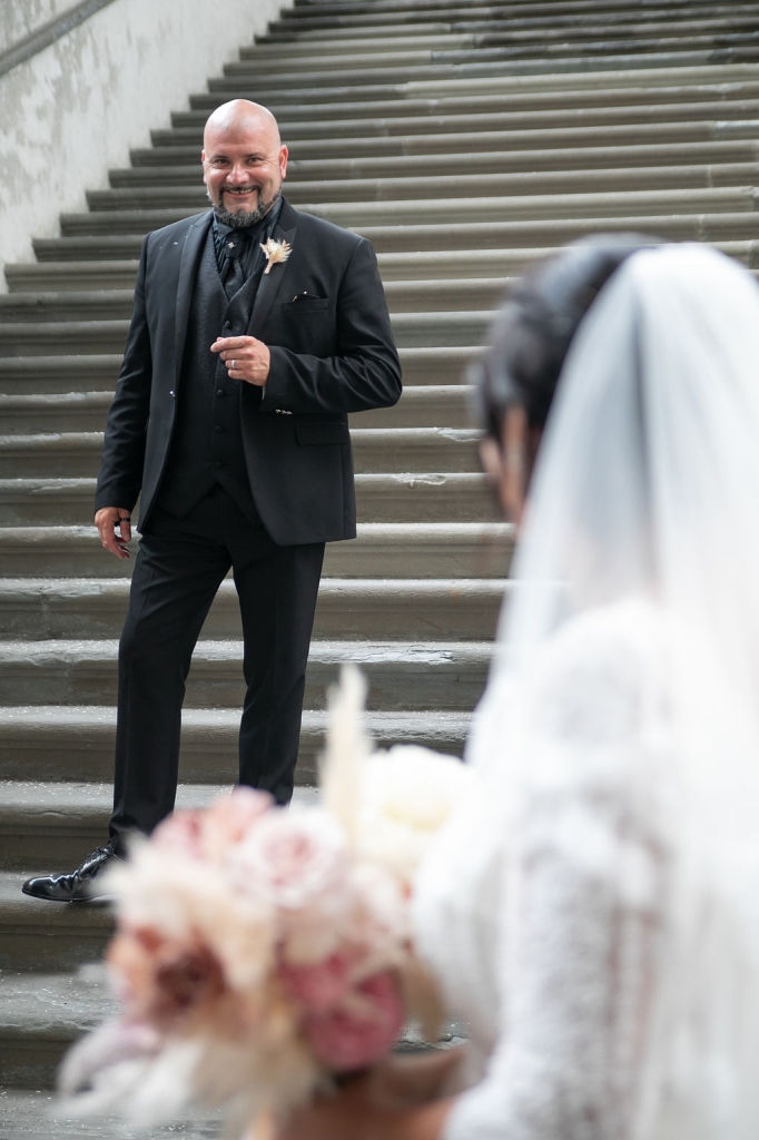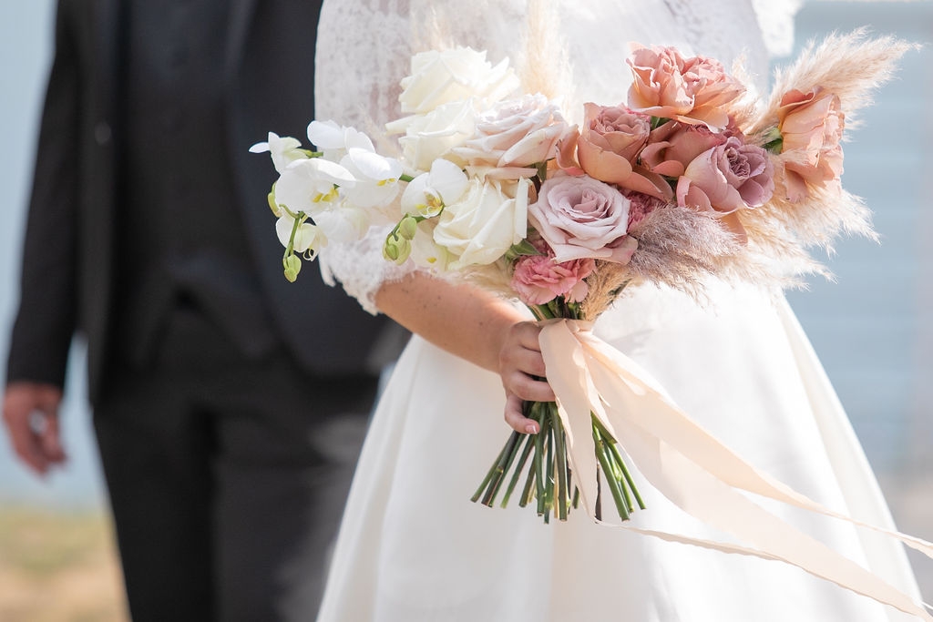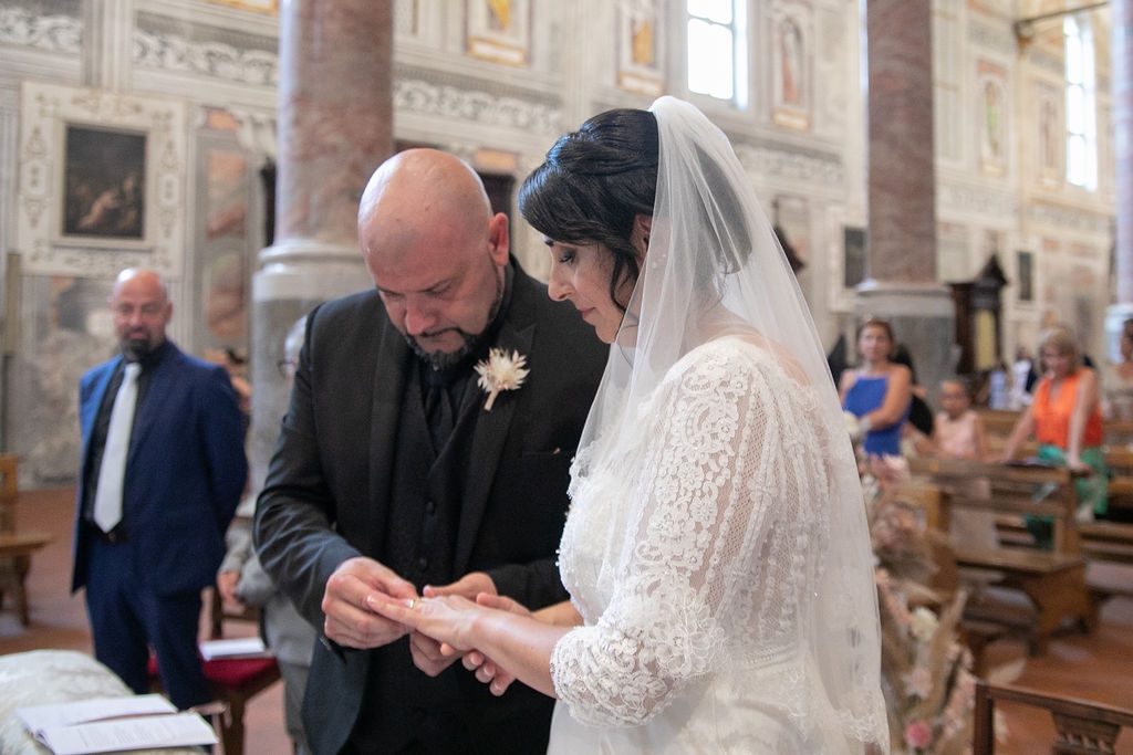 Pamela and Alberto were already a family but, after having suffered a lot during the pandemic, they decided to celebrate their love with their beloved ones. They live on Lake Iseo and they chose to get married in the amazing Basilica of Lovere. For their reception, they chose an historical venue in Vallecamonica, sourrounded by vineyards. Blush pink, soft natural colours, giant roses and pampas grass were the leading elements of the mood.