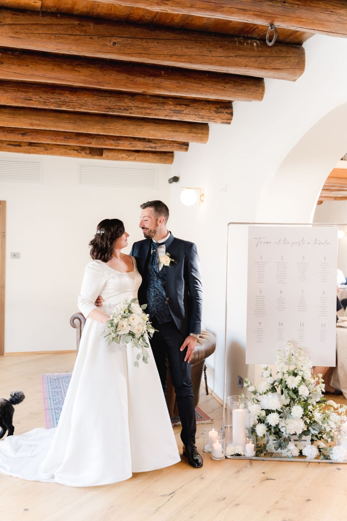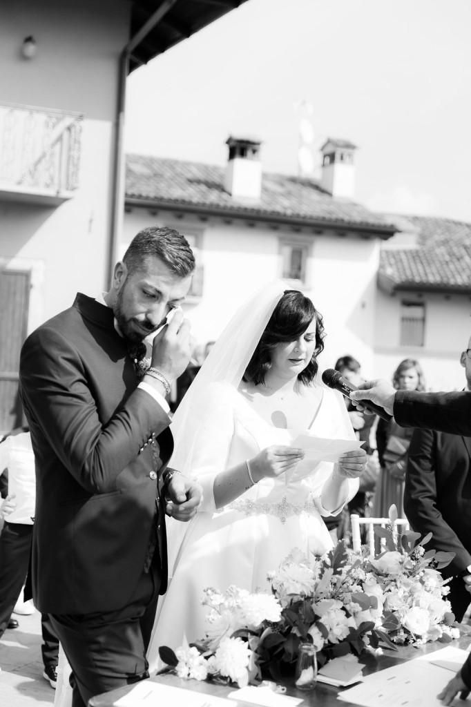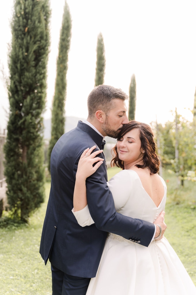 A sunny autumn day, a romantic ceremony in a wineyard, an elegant and timeless atmosphere. Ada and Luca celebrated their love with their beloved at Borgo Glazel, in Vallecamonica