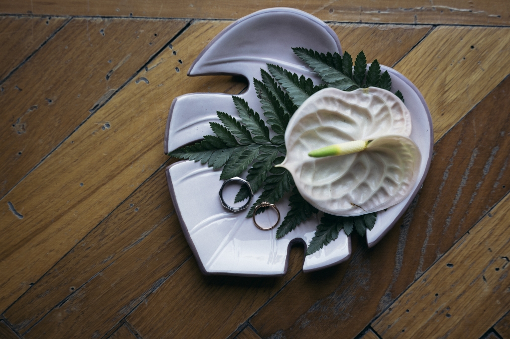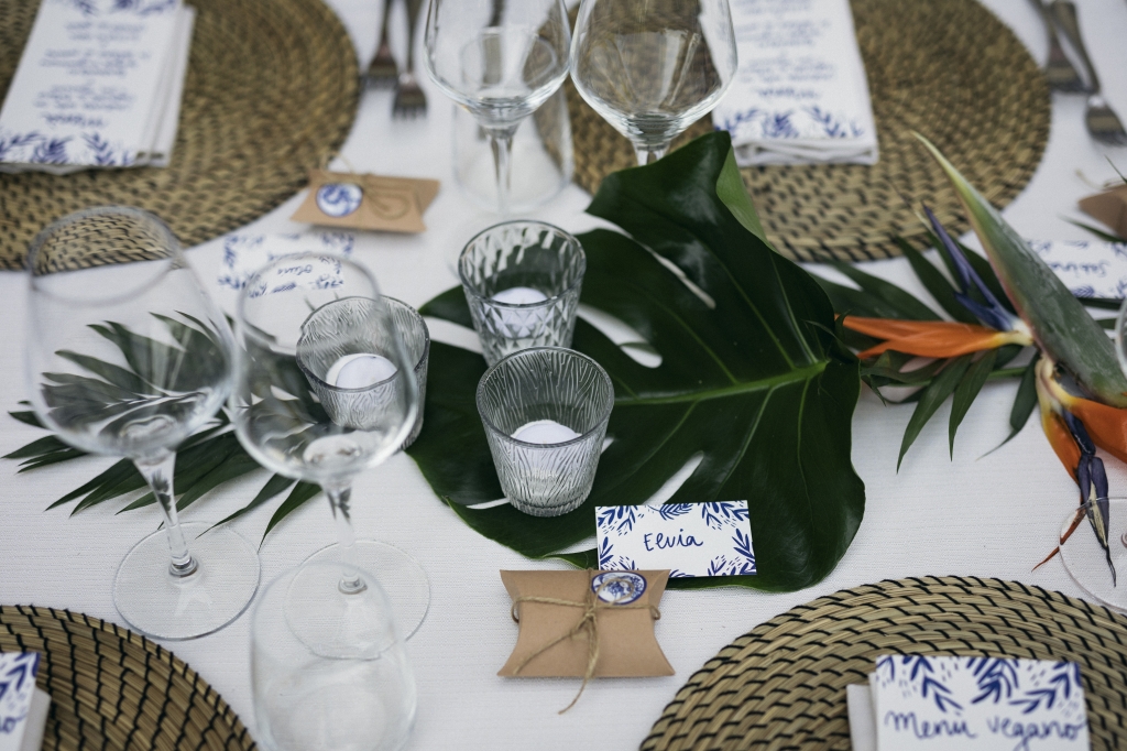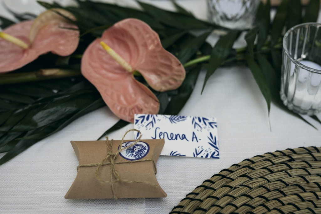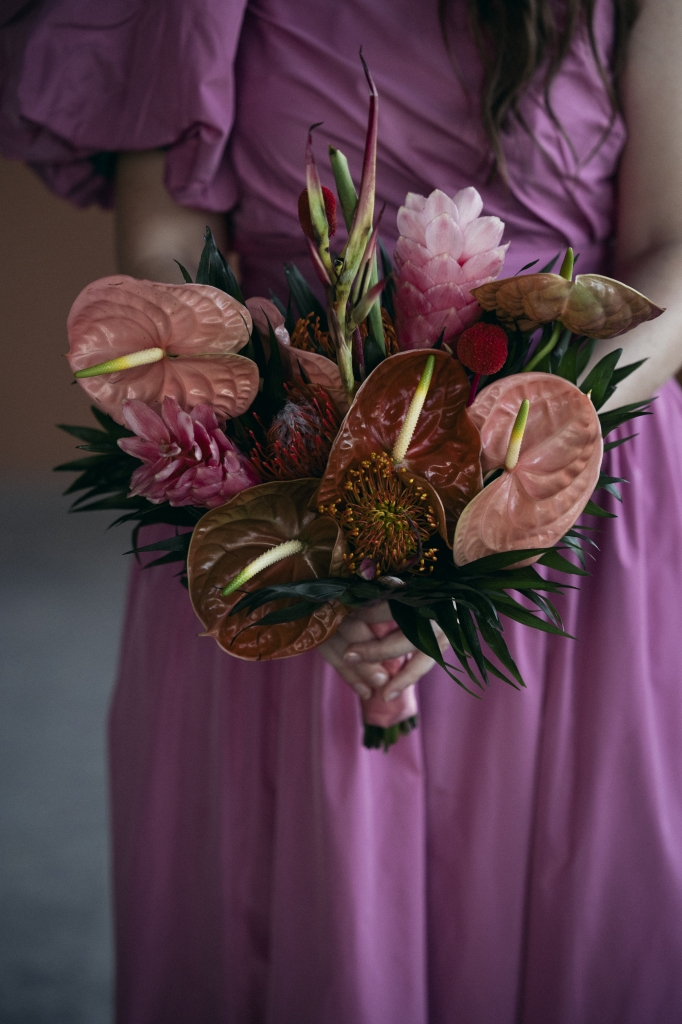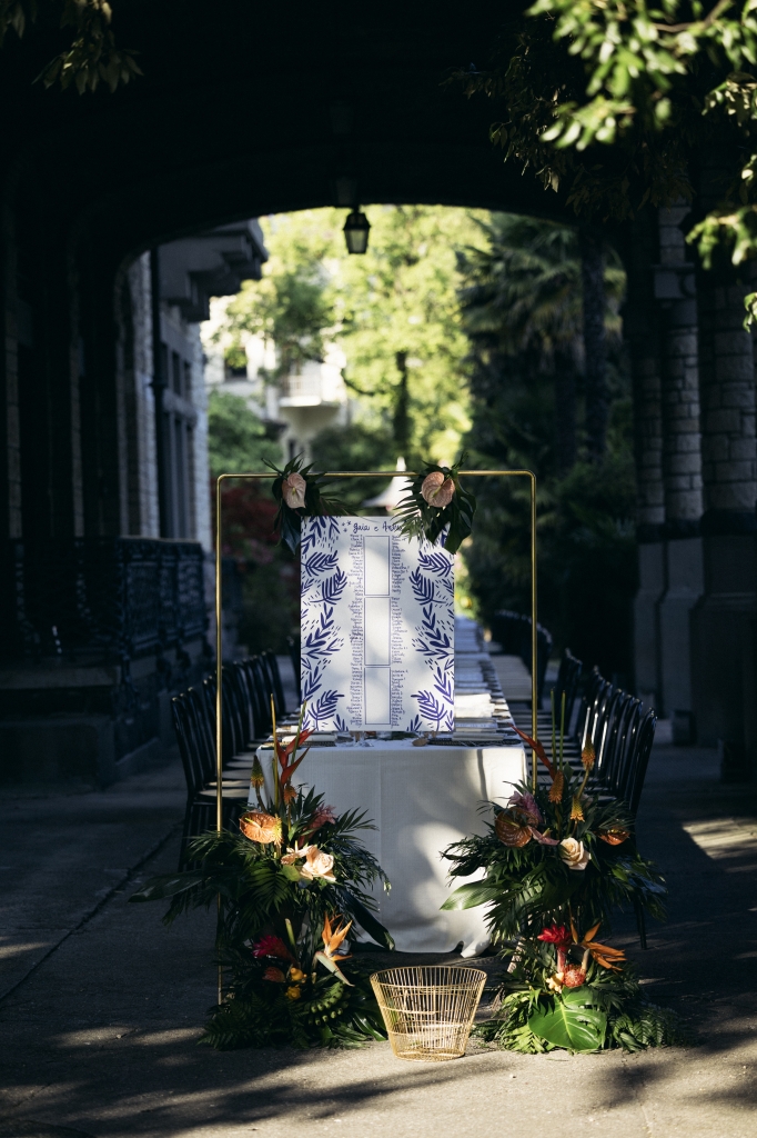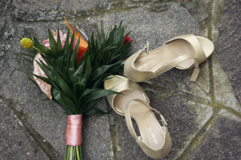 Tropical flowers, bright colours and an amazing wedding dress gave the final touch.