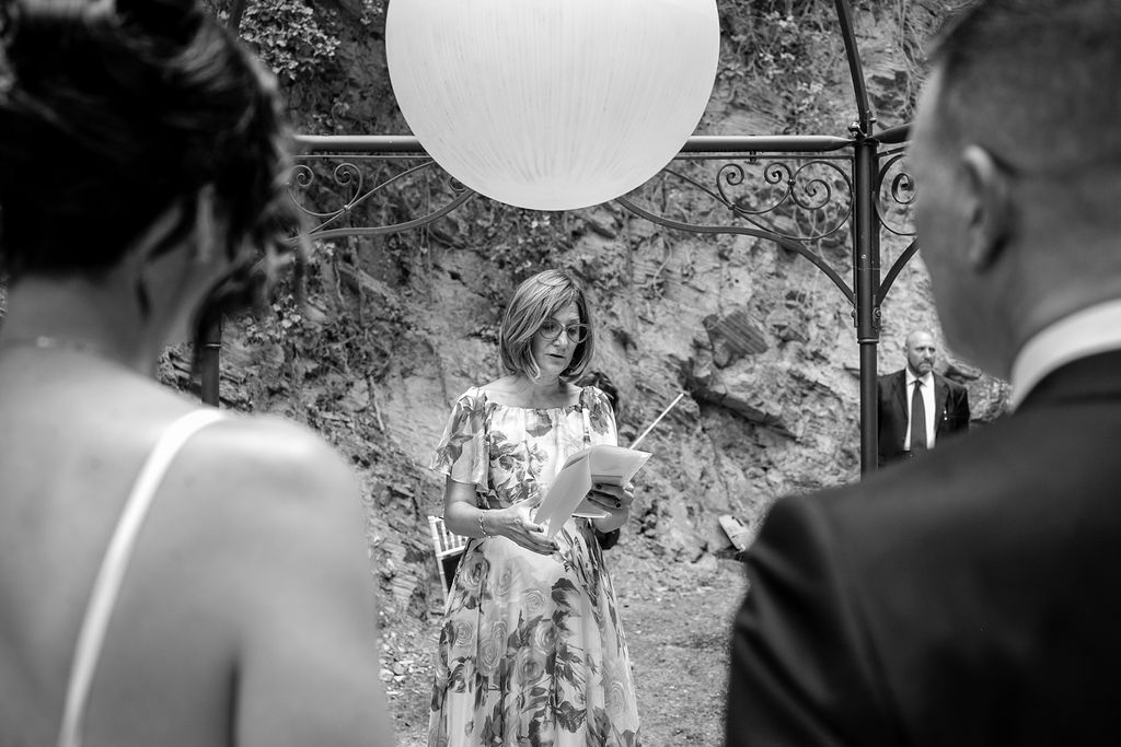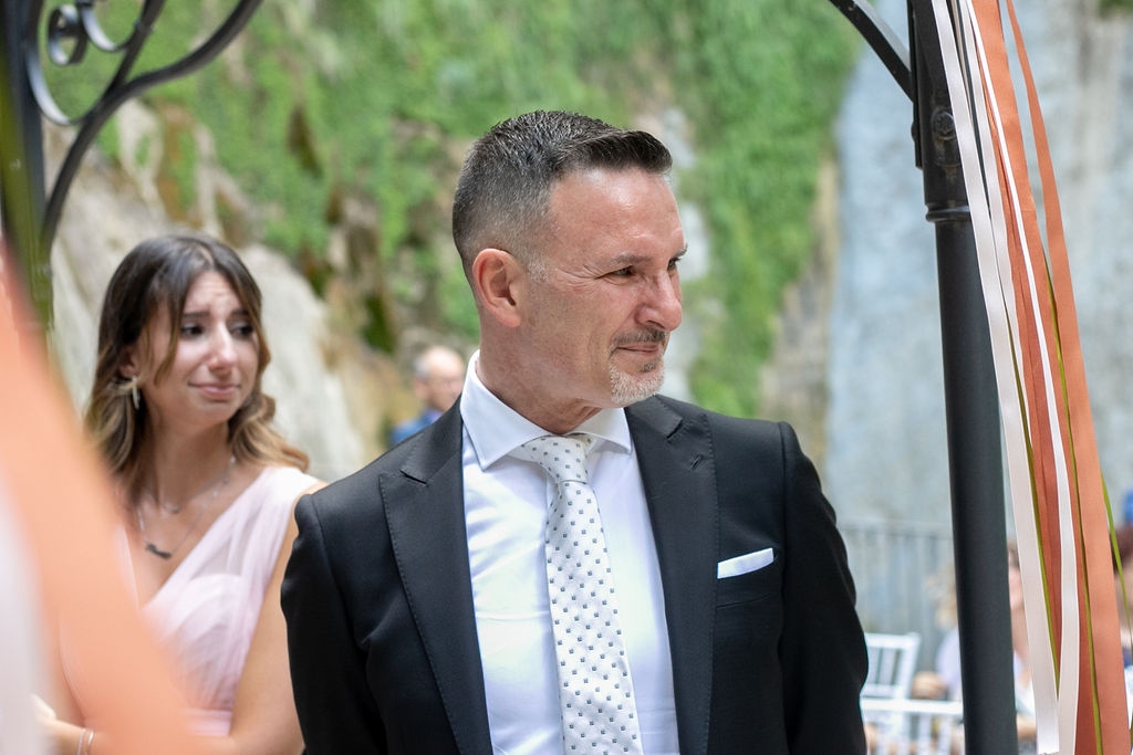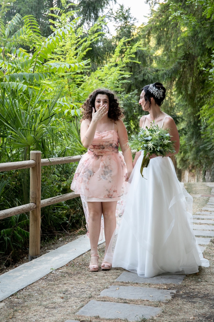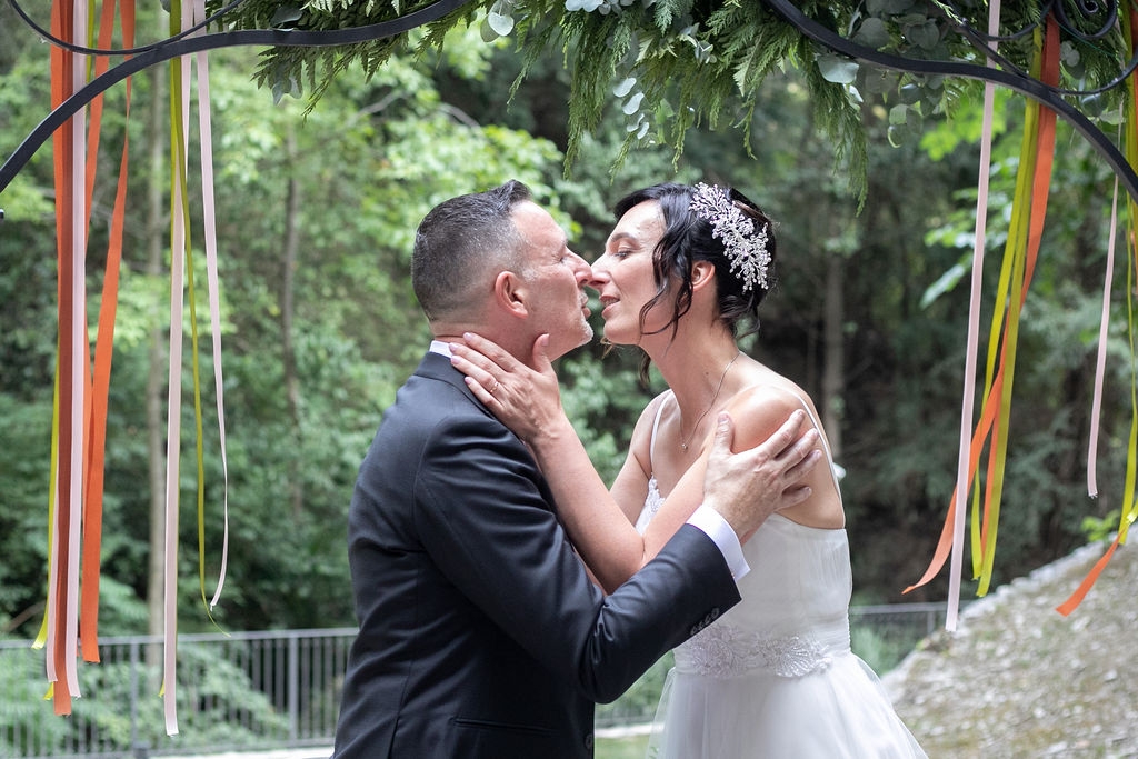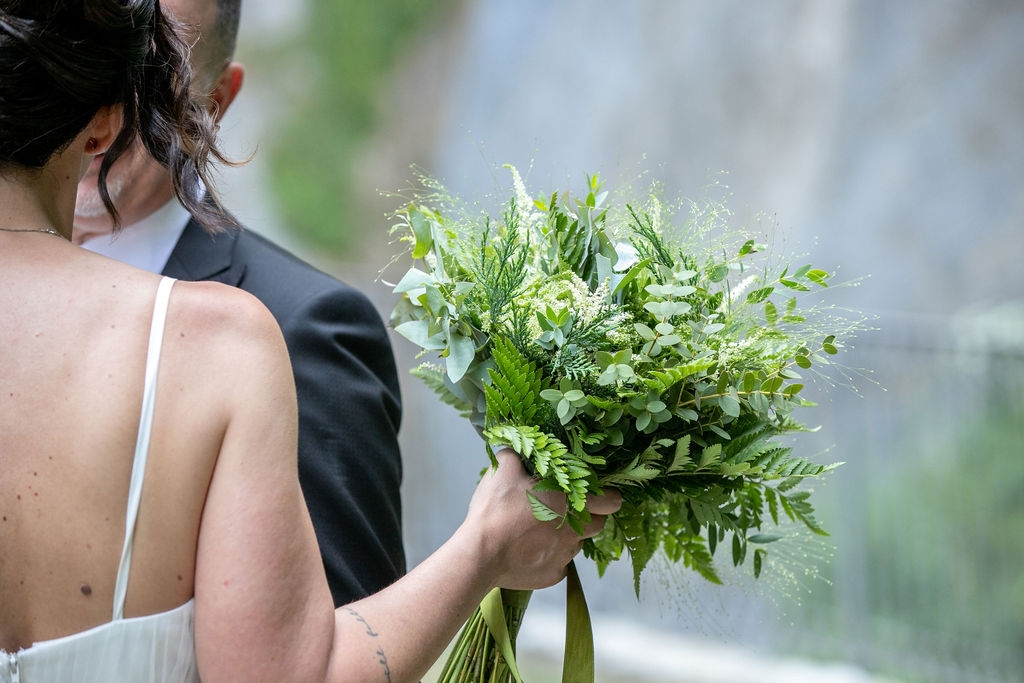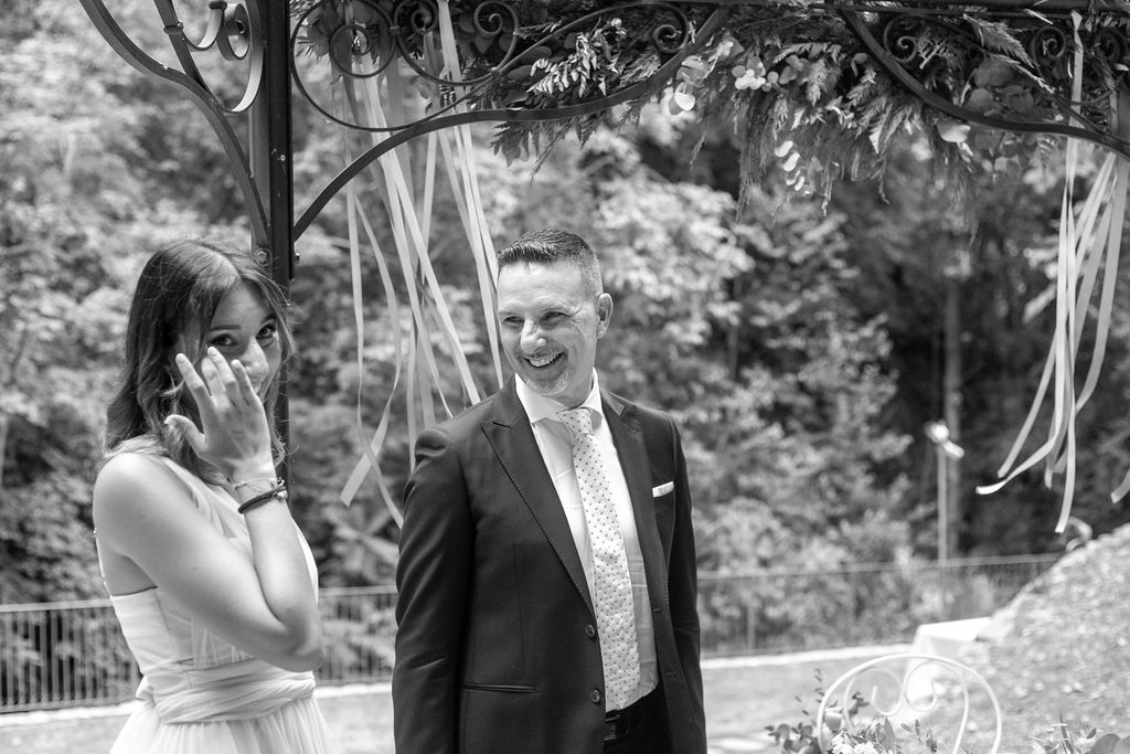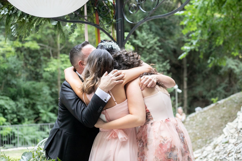 For their very intimated wedding Milena e Roberto dreamt a ceremony surrounded by nature. They choose a garden at the bottom of a waterfall (unluckly the summer was very dried and the water was really a little). The atmposphere was very moving cause both of them were taken to the altar by their daughters, who read two personal letter during the ceremony.