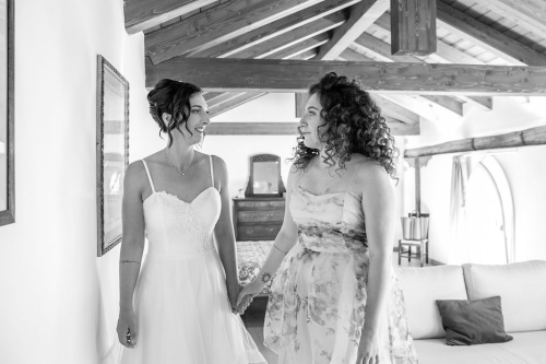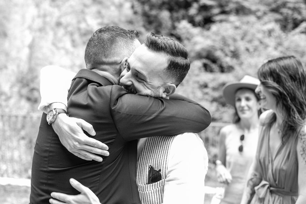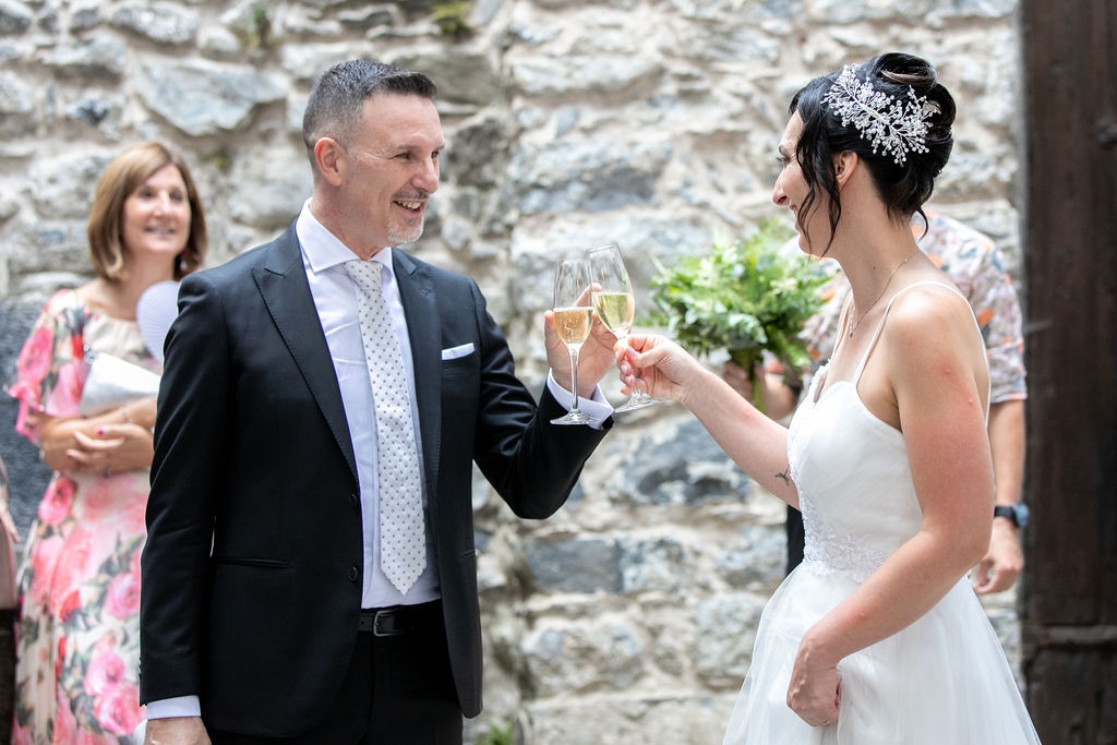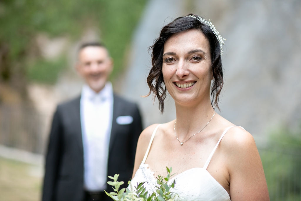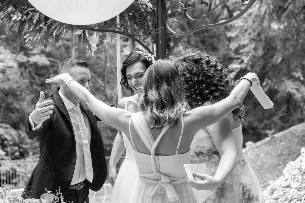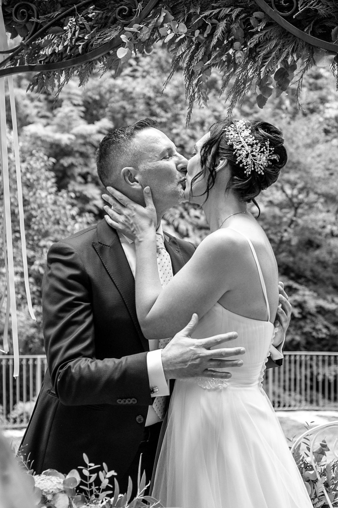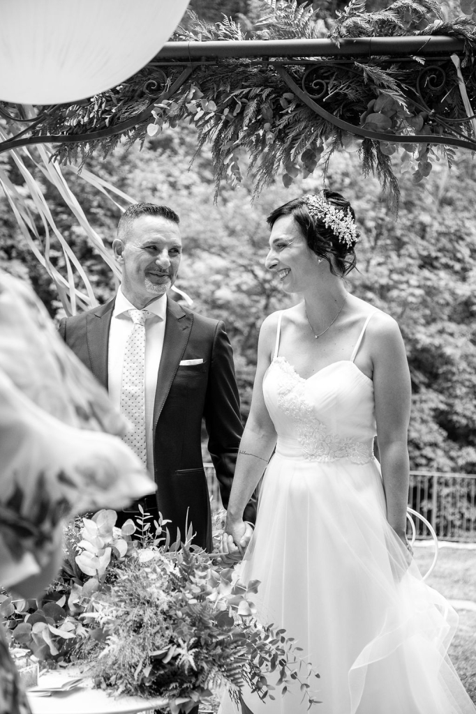For their very intimated wedding Milena e Roberto dreamt a ceremony surrounded by nature. They choose a garden at the bottom of a waterfall (unluckly the summer was very dried and the water was really a little). The atmposphere was very moving cause both of them were taken to the altar by their daughters, who read two personal letter during the ceremony.