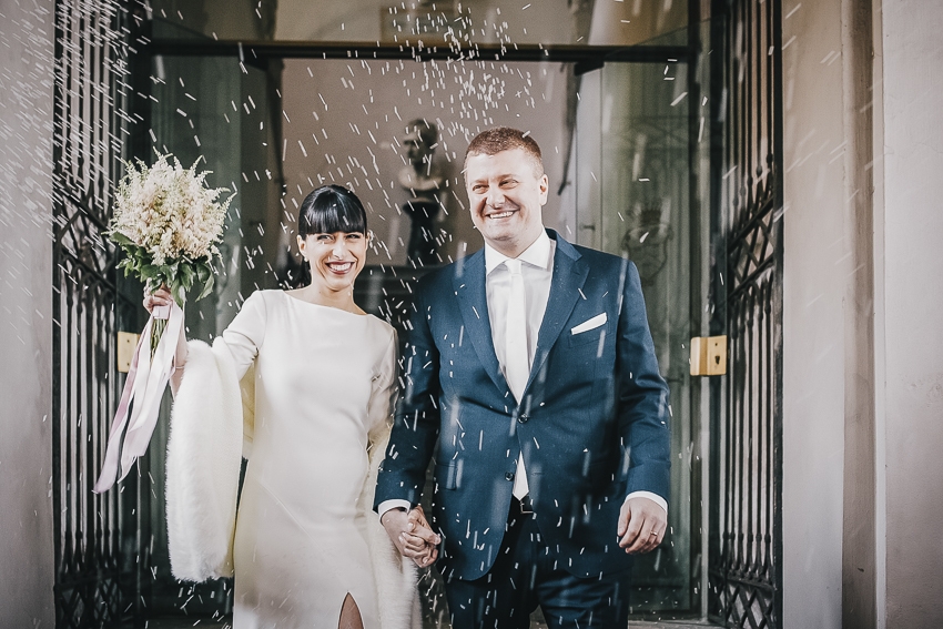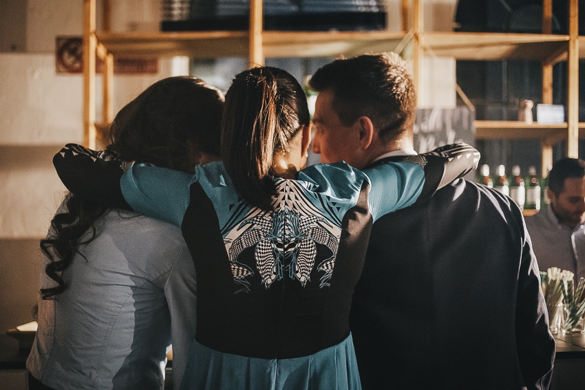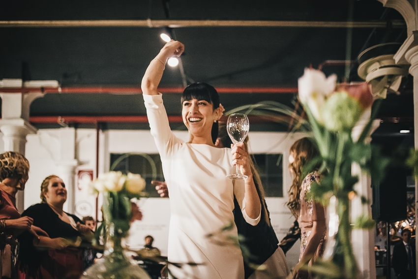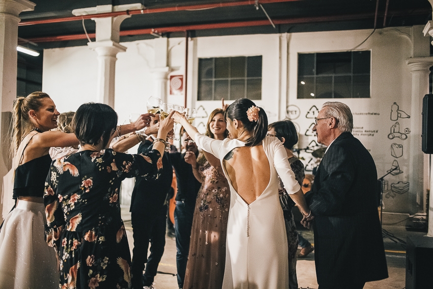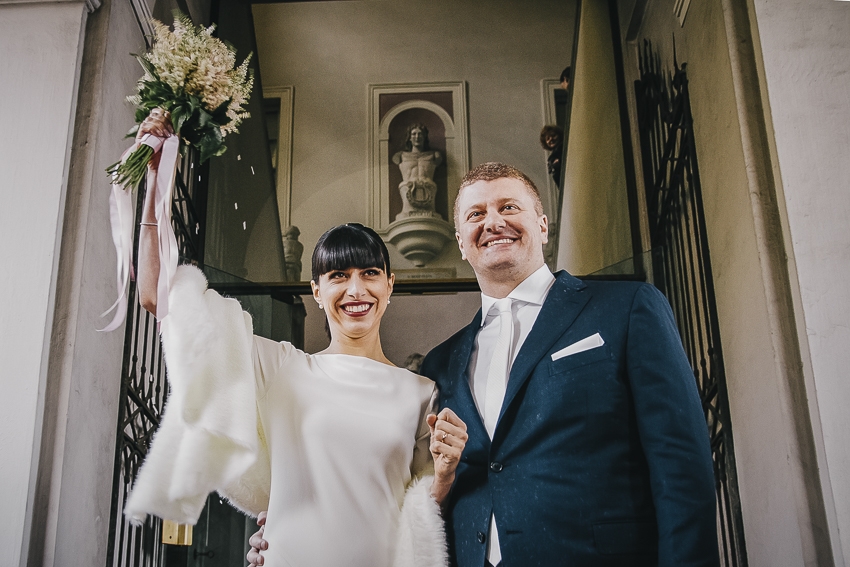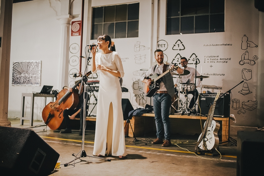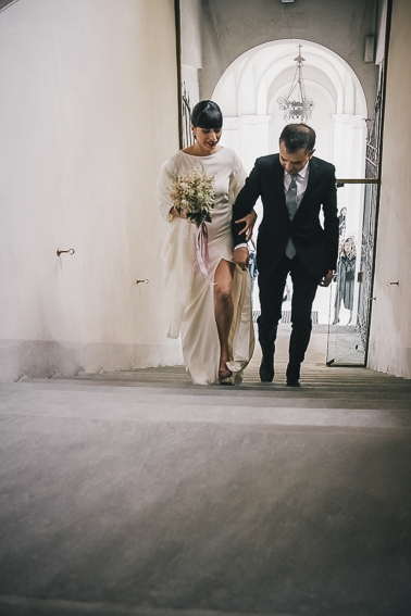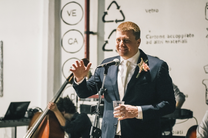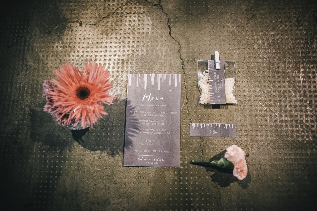 Caterina e Fabrizio sono venuti da me con le idee ben chiare: volevano un matrimonio che fosse una festa e che li rappresentasse al 100%, a partire dalla location. Abbiamo scelto così lo Spazio Fase, un ex cartiera riconvertita, e, con l'aiuto di fornitori impeccabili e creativi, lo abbiamo trasformato in un "locale trendy" con tanto di bar e mostra d'arte. Gli sposi e i loro allegri amici hanno fatto il resto! Complice il cambio dell'ora (che ha fatto guadagnare un'ora in più) i ragazzi si sono scatenati fino all'alba.