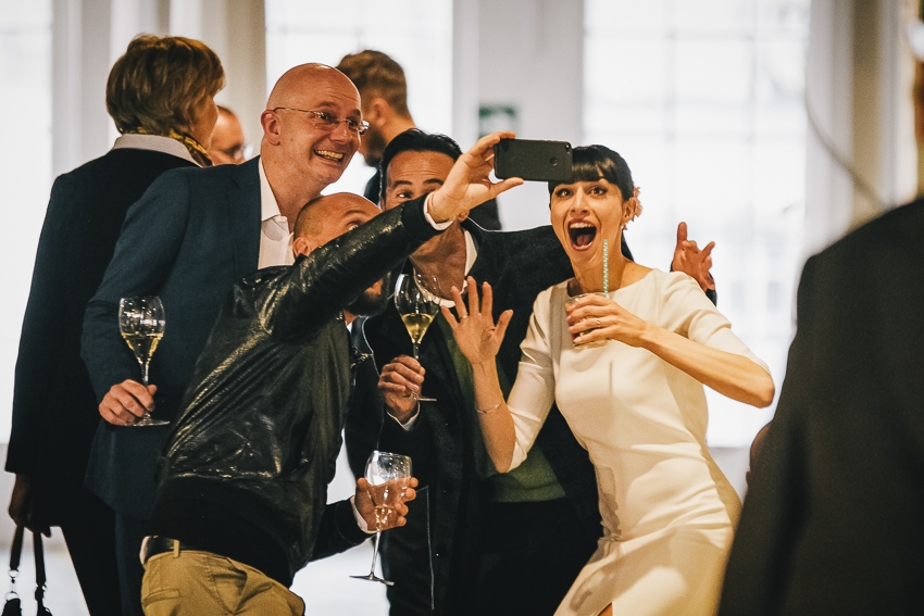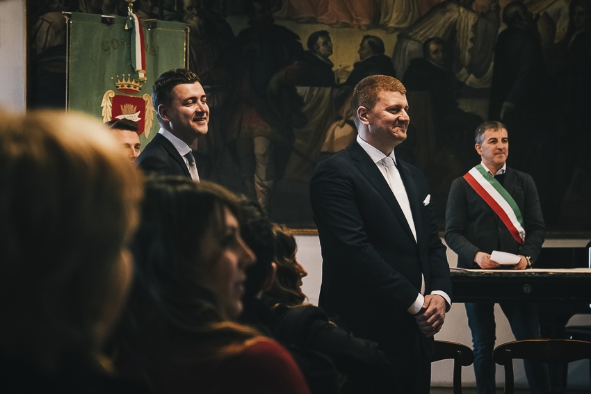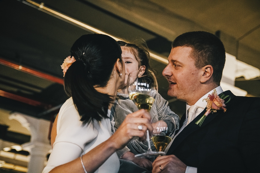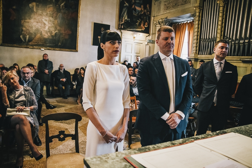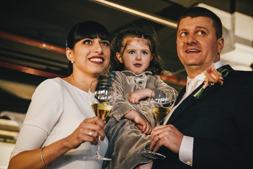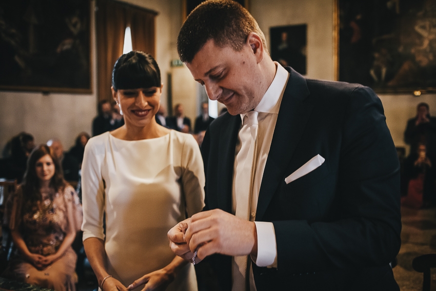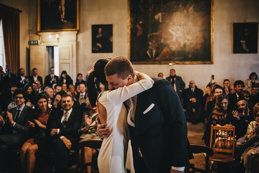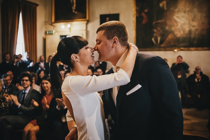 Caterina e Fabrizio sono venuti da me con le idee ben chiare: volevano un matrimonio che fosse una festa e che li rappresentasse al 100%, a partire dalla location. Abbiamo scelto così lo Spazio Fase, un ex cartiera riconvertita, e, con l'aiuto di fornitori impeccabili e creativi, lo abbiamo trasformato in un "locale trendy" con tanto di bar e mostra d'arte. Gli sposi e i loro allegri amici hanno fatto il resto! Complice il cambio dell'ora (che ha fatto guadagnare un'ora in più) i ragazzi si sono scatenati fino all'alba.